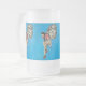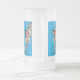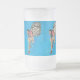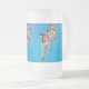 Esta caneca de cerveja é ilustrada com uma bela fada vintage rockabilly com asas de borboleta sobre fundo azul.