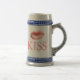 Caneca de cerveja engraçada (caneca de cerveja). Língua humana se espiando de um buraco negro em forma de boca e o texto Cheeeezzz ao lado do espectador. A mulher beija lábios e a palavra beijo ao lado de um bebedor. Você pode alterar as imagens e pode alterar ou excluir a palavra Beijo. Divirta-se!