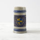 Se há uma caneca de cerveja que você quer na sua coleção é esta! Lembrando a caneca de cerveja alemã, ela é decorada com um fundo azul de cobalto, flores bronzeadas, bolotas e grifo ao redor do escudo de Cusack. Celebre no estilo ou adicione como peça decorativa à sua casa. Um presente fantástico para casamentos, reuniões, aniversários, Natal, aposentadorias, vocês o chamam de que eles vão adorar!