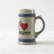 Eu amo Octoberfest com uma terra arrendada do coração vermelho grande e de braço forte uma caneca de cerveja.