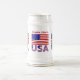 A caneca de cerveja ou caneca personalizada apresenta a bandeira dos Estados Unidos da América com as letras EUA abaixo, em vermelho, branco e azul, com estrelas e listras, encontradas na bandeira. Personalize adicionando um nome ou, para um presente criativo. Excelente para feriados patrióticos, como o Dia da Independência. Um maravilhoso presente para o seu patriota. Divertido de usar em reuniões de família, viagem e clubes. Pai pode viver para Dia de os pais também.