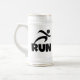 Tirando T-shirts, canecas, bolsas, guardas, topos de tanques, capuzes, e outros roupa e presentes para corredores com um corredor da silhueta preta e texto preto que lê RUN. Esses itens de roupa RUN e presentes são excelente para qualquer um que esteja treinando para um 5K, qualquer um que apenas ame correr, ou alguém que já tenha realizado várias maratonas!