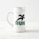 Se você estiver à distância correndo, seja apenas treinando para seu primeiro 5K ou você tiver realizado um 5K, 10K, meia maratona, ou maratona, você vai adorar nossas T-shirts RUN, capuzes, tampas de tanques, botões, canecas, guardas, e muitos outros itens de roupa de corrida com um corredor de silhueta preto e texto verde teal.