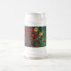 Caneca de cerveja de cerveja que apresenta o Jardim de Fazenda de pintura de óleo de Gustav Klimt com girassóis (1907). Um belo jardim de girassóis e belas flores azuis, vermelhas, roxas, rosa e brancas. Um presente de excelente para fãs de Arte Nouveau e de Arte Austríaca.