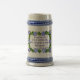 Uma caneca de cerveja decorada com as bem conhecidas linhas da Mãe Juliana de Norwich, "Todos devem estar bem e todos devem estar bem e todos os tipos de coisas devem estar bem", envolta numa fronteira de travessas azuis pintadas à mão. Veja também a caneca de dedo correspondente e o cartão de saudação.