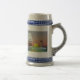 Caneca de cerveja da cerveja (ou caneca de cerveja do café) com pintura por Lang Solurson. Dragão e navio Mystical do mar no por do sol.