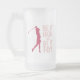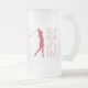 Citação fofa de golfista "Tee It High & Let it Fly!" o design apresenta uma fonte divertida de meados do século em rosa combinada com a silhueta de uma golfista feminina também em vermelho magenta. A cor da citação e da golfista é personalizável. A tipografia e a golfista são desenhos gráficos vetoriais e podem ser facilmente transferidos para outros produtos Zazzle grandes ou pequenos, e manterão a clareza sem pixelar. Mensagem com solicitações de cores personalizadas ou dúvidas. Caneca de cerveja divertida com vidro fosco é o acessório perfeito para o bar para o décimo nono buraco!