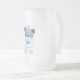 Uma caneca gelada com uma ilustração fofa de um urso azul vestindo um chapéu de enfermeira com um pequeno coração nela. Também vestindo uma máscara protetora e tem um estetescópio azul.