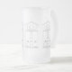 Caneca preta & branca da casa minúscula da tinta do desenho de fosco do vidro de cerveja. Esta imagem é de minha tinta original no desenho da mão de mylar de uma casa de campo rústica pequena com encantamento de detalhes arquitectónicos e a pedra pequena benches cada lado da porta.