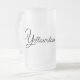 Esta caneca de vidro fosco alto é mostrada com uma impressão de arte de um lobo com texto Yellowstone. Personalize este item ou comprar como está. Imagem do stock