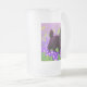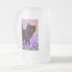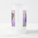 Fosco Glass Beer Mug apresentando um gatinho preto Gustav Klimt! Esta beleza de olhos largos se coloca num campo verde de flores roxas. Um presente pensativo para amantes de gatos e entusiastas de arte austríacos!