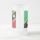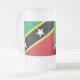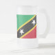 Uma caneca de cerveja de vidro fosco mostrando a bandeira nacional da nação Caribe oriental de duas ilhas de Kitts Santos e Nevis.