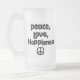 Caneca De Cerveja Vidro Jateado Paz Amor Esperança