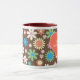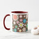 Perfeito para o Dia de as mães com o logotipo do Dia de as mães Feliz e com um design floral retrógrado fofo de flores margaridas multicoloridas de amarelo e azul e branco contra um fundo marrom chocolate. Esta ilustração floral é brilhante e tendenciosa.