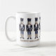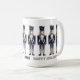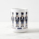 Aqui está uma caneca de férias com uma fileira de Nozes elegantes, vestidos de azul e prata.