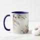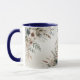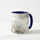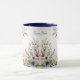 Bela Caneca de Café com Flores Azul Marfim em Aquarela