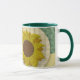 Esta caneca de girassol apresenta um girassol desenhado em um mouse e um padrão enchido em um fundo em camadas para uma aparência de álamo.
