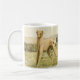 Uma caneca mostrando três galgos no exterior usando um impressão antigo