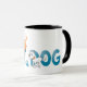Mok met een kleurrijke illustratie van een kat en een hond. Door de Belgische illustrator en cartoonist Stef Ringoot.