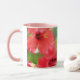 Uma bela foto de um beija-flor voando perto das flores com um desejo de um Feliz Dia da Mãe, é mostrada nesta bonito caneca para a mãe. Uma caneca rosa e branca com foto colorida é um presente perfeito para dar à mãe no dia especial!