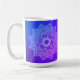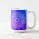 Esta mandala com seus intrincados designs é sombreada em azul-claro e violeta contra um dramático pano de fundo azul-indigo. Isso certamente iluminaria qualquer cozinha. Bela mandala.