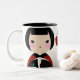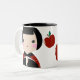 Este Kokeshi tem um quimono do teste padrão da maçã e uma maçã em sua luva.