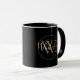 Caneca de monograma preta e dourada elegante. Você pode personalizar o nome, monograma e personalizar a fonte e as cores para criar seu próprio design exclusivo. Criado por Thisisnotme©