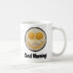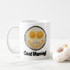 Fotografia de dois ovos fritando em panela com sorriso adicionado digitalmente. O texto personalizável abaixo diz "Bom dia!"