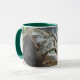 Caçador verde Combo Mug de 11 oz com olhos verdes, gato olhando para você.