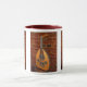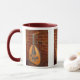 Esta caneca caracteriza o oud surpreendente. É um instrumento musical amarrado dado forma pera de uso geral para o norte na música africana e do Oriente Médio. O oud moderno e o alaúde europeu são ambos bastante similares. O oud pode ser identificado por sua falta das fricções e do pescoço menor. É decorado com design complexo, intrincado no preto, prata e branco que contrastam belamente com a madeira dourada lindo.