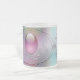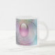 Um design azul pastel, lavanda e rosa, com um ovo rosa translúcido em uma posição de filigrana prateada, circulado por uma estrutura oval prateada leve, com quatro gemas mais lisas, como ovos coloridos.