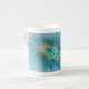 Caneca De Porcelana A pequena Bela Flor Fractal Dourada Azul Moderna