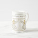 Porcelana elegante do Natal para servir seus convidados do feriado com um anjo filigrana dourado da benevolência quadro por raios de sol dourados. Há uma tipografia do ouro sobre a soletração do design, "anjo da benevolência". O design espiritual é repetido três vezes em torno da caneca/copo.