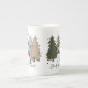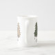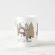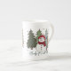 Aproveite sua xícara de chá nesta linda caneca de porcelana de um boneco de neve nas árvores de Natal, o texto é "Baby It's Cold Outside"