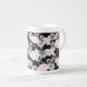 Caneca De Porcelana Belo Padrão Floral Rosas Iris Azul Rosa