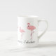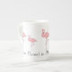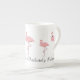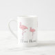 O rebanho de chá de porcelana, de ossos grandes, de cor rosa, e a caneca de café têm um texto personalizado que diz que (seu nome) é absolutamente fabuloso.