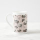 Desenhada à mão a tinta preta, esta caneca elegante e feminina apresenta um belo padrão de crânios, rosas e teias de aranha em creme e tons esbranquiçados, todos sobre um elegante fundo rosado.