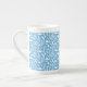 Esta caneca da China óssea é mostrada com um impressão azul e branco florescente. Personalize este item ou comprar como está.