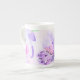 Uma linda caneca com borboleta roxa pintada em aquarela.