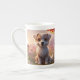 Esta imagem adorável apresenta uma delicada xícara de porcelana óssea adornada com uma ilustração do cão zodíaco chinês. O cão é representado num estilo bonito e caprichoso, com os seus traços únicos listados no lado oposto da xícara. A xícara é lindamente feita com detalhes complexos, fazer-a uma adição encantadora e significativa a qualquer coleção.
