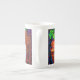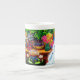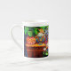 Bone China Mug com a pintura de animais de Louis Wain Master of Cat College (1860-1939). Um gato branco pensativo com olhos azuis impressionantes senta-se pesadamente ao lado de uma variedade vibrante de flores bonitas. A majestosa faculdade de gatos venta no fundo sob um céu rosa e azul. Um presente maravilhoso para amantes de gatos e arte inglesa.