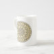 Uma mandala concêntrica, tipo rendas, em azul escuro, com pontos brilhantes, azuis e dourados, girados entre as camadas, faz um design divertido, que traz à mente um céu noturno estrelado. Esta caneca está disponível em jumbo, espresso e tamanhos e estilos de porcelana óssea.
