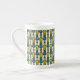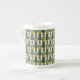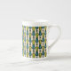 Uma Mug de Café China na moda Bone, com um padrão decorativo 'tribal' em Verde e Teal, esboçada em Preto, em um Fundo Creme. Parte da coleção Posh & Painterly "Jungle Drums".