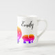Café de porcelana de ossos personalizados ou caneca de chá com design de elefante colorido e nome.
