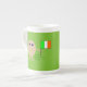 Esta caneca incrível mostra uma caricatura engraçada de um ovo com braços e pernas. O ovo tem braços e pernas e uma pequena fenda na cabeça expondo o dentro branco. Tem olhos azuis com um aluno preto e um sorriso grande onde a gema do ovo pode ser vista. A casca do ovo parece áspera. Este ovo irlandês patriótico detém orgulhosamente a sua bandeira e há um texto verde abaixo da bandeira que diz "é tudo sobre a craque". Este design é excelente para o Dia de São Patrício ou para homens e mulheres irlandeses orgulhosos.