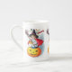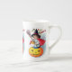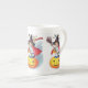 Uma caneca bonita de China de osso do Dia das Bruxas do vintage que caracteriza uma bruxa pequena em um Jack O'Lantern, pintado pelo ilustrador americano/artista comercial Ellen Hattie Clapsaddle.
