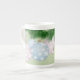 Esta xícara apresenta três Enfeites de natal coloridos não tradicionais em verde-pastel, rosa e azul com estrelas brancas penduradas em uma tosse verde. Os ornamentos em diferentes tamanhos circundam a caneca sobre um fundo verde pastel.