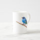Esta caneca de café caracteriza uma estamenha de índigo. Este pássaro azul impressionante é representado em um ramo.
