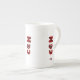 Vocês podem admirar o meu desenho de um coração felpudo vermelho e preto listrado que eu chamo, "Eu Felpudo U", agora adicionado a esta caneca da China Óssea. Isto faz o presente perfeito para qualquer ocasião.