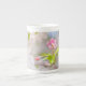 Vista aproximada de uma macieira na floração do cheio. flor de maçã rosa-solteiro num galho contra e entre outras flores de cor rosa macia e céu azul claro. A impressão de pureza e beleza. A pintura da Natureza. Fotografia texturizada.